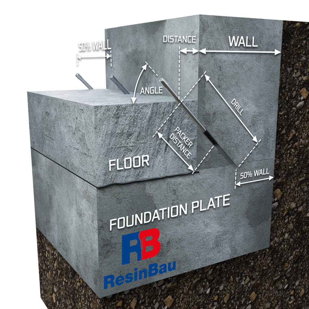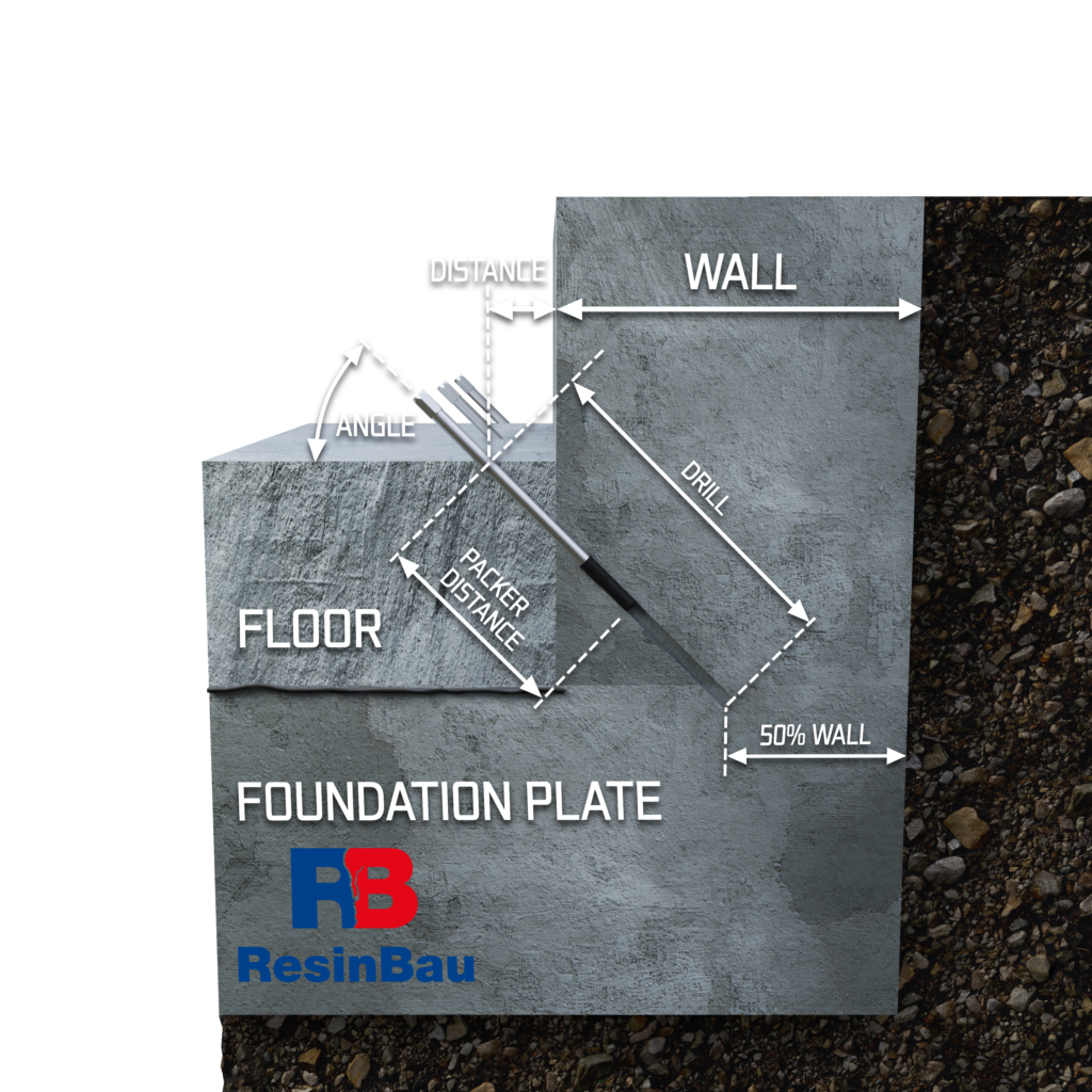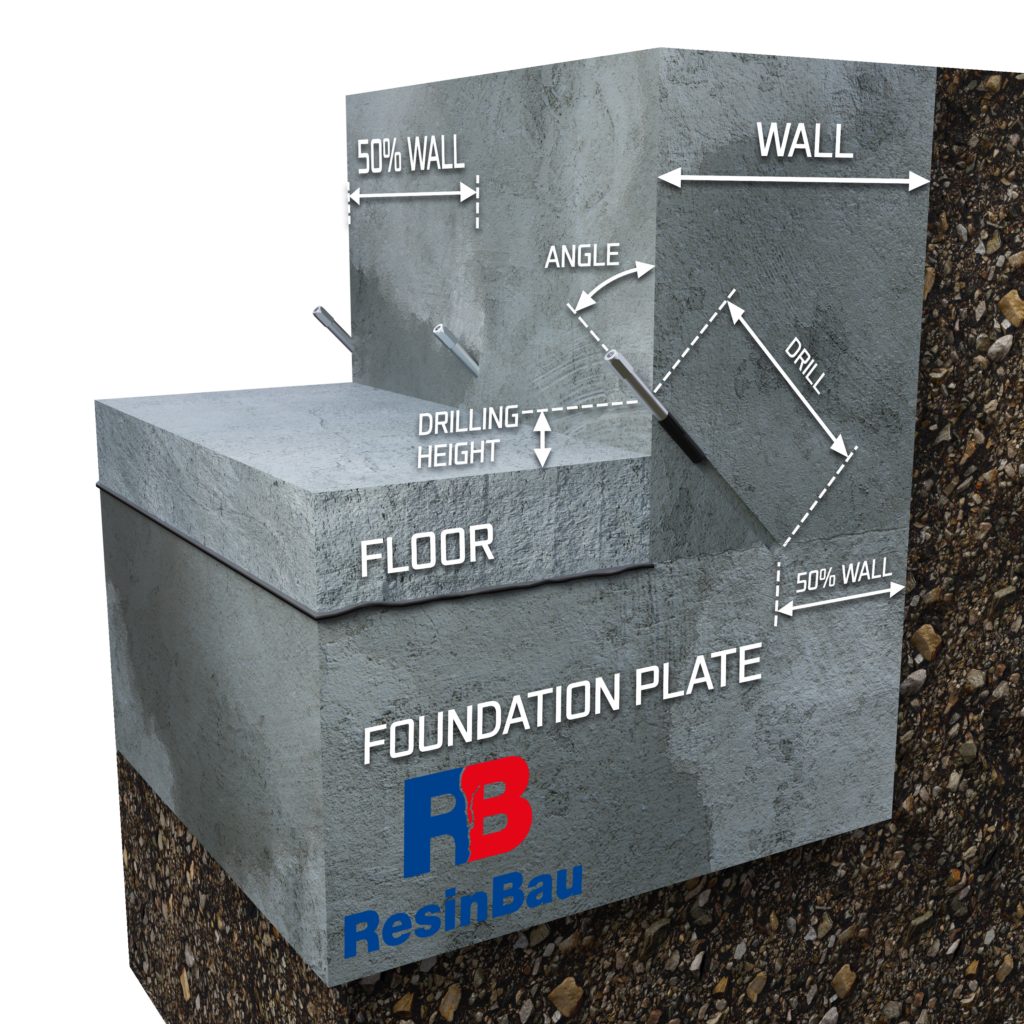 - O ile centymetrów należy oddalić się od ściany i na jaką głębokość wiercić przez posadzkę, aby osiągnąć styk ściany z płytą fundamentową, jeśli stosunek grubości ściany do posadzki jest nietypowy.
