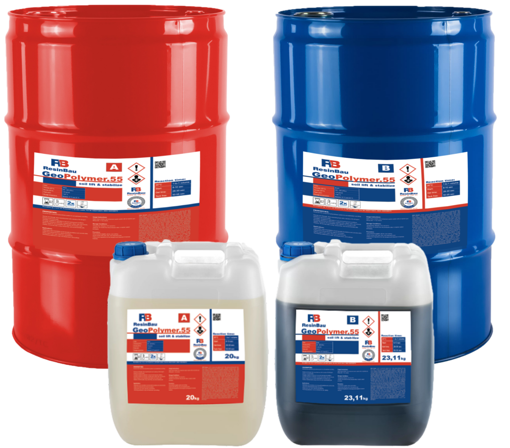 GeoPolymer.55 to dwuskładnikowy system piany poliuretanowej o zamkniętych komórkach, charakteryzujący się dużą gęstością, wytrzymałością